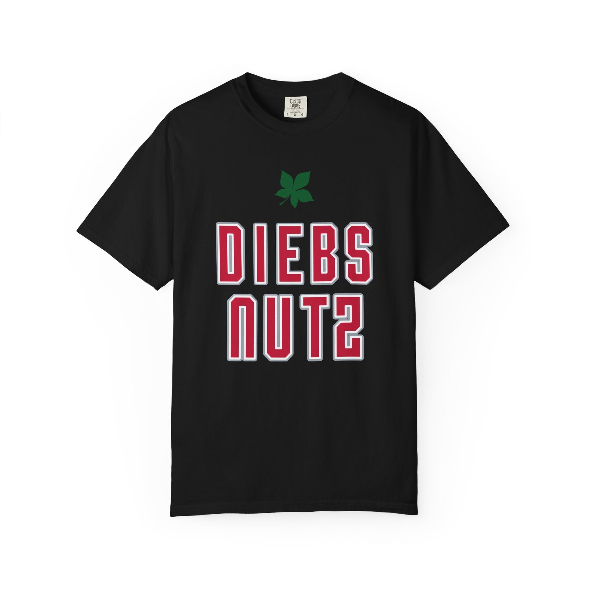 Diebs Nuts Graphic T-Shirt — Retro Lettering Tee with Leaf Accent